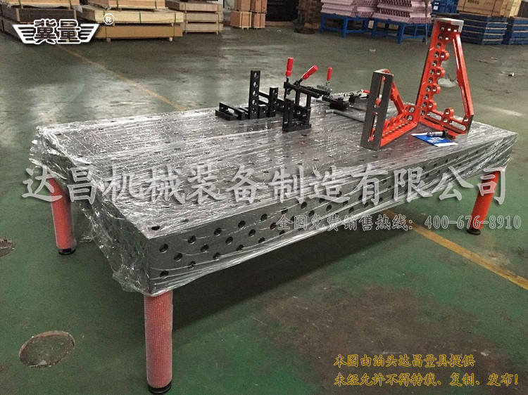 三維焊接工裝是堅(jiān)固耐用的,而且比較好清理,在焊接過程中用防飛濺液就可以除去表面的焊渣就可以。達(dá)昌生產(chǎn)的三維焊接平臺都是采用HT300材質(zhì)樹脂砂鑄造的,工裝也都經(jīng)過特別的處理,在整體質(zhì)量上面有很大的提升。