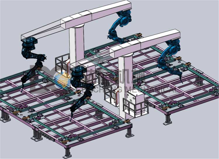 我司設(shè)計(jì)的集裝箱焊接吊臂機(jī)器人,采用懸臂增加焊接機(jī)器人的行程,可用于多種鋼結(jié)構(gòu)集裝箱焊接工作。